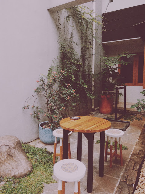 Dari luar, tempat ini sudah terlihat sangat nyaman. Dengan beberapa meja yang berada diteras lengkap dengan hiasan bunga dan dedaunan. Dan saat masuk, kalian akan merasakan atmosfir sedang bertamu ke rumah teman atau saudara. Ternyata didalam cukup luas dan terdapat sekitar enam meja.